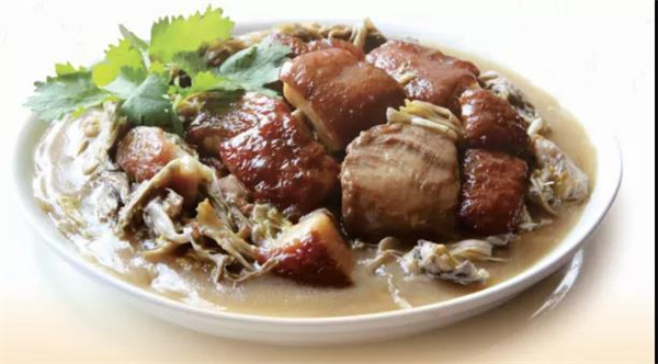用芭蕉的清香帶出紅燒肉的美味,味道香醇不油膩,兩者配合相得益彰,讓人回味無窮。不論菜名是“芭蕉花燉紅燒肉”還是“軍民魚水情”,這道菜在滿足大家味蕾的同時,也會讓人情不自禁想起當年那些感人至深的故事。來到麻栗坡,身處青山碧水,品嘗到這道美食,才是不虛此行。