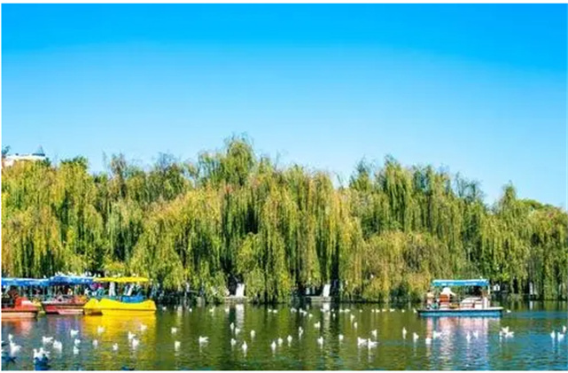 隨著公園西區長聯文化大道上銀杏漸黃,臨水區域就會飛來了首批安家的紅嘴鷗。