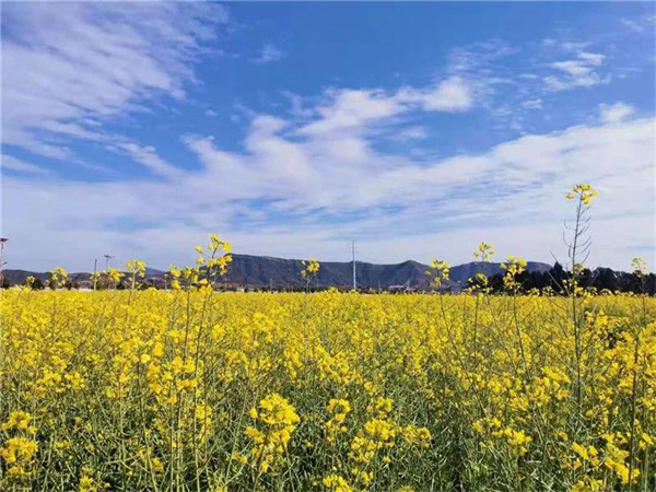 楚雄子午鎮的油菜花,已于近日盛開,花田里蝶飛蜂鳴,花田旁農人忙碌,白墻黛瓦掩映花間,形成一幅鄉村水墨山水畫卷。你可以去尋春色了,去感受“兒童急走追黃蝶,飛入菜花無處尋”的意境。