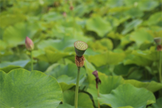 過些時日,忽見幾支箭似的葉柄破水而出,擎著尚未舒展的嫩葉,在風(fēng)中輕輕搖晃。