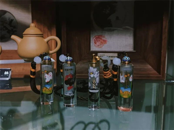 依托旅游大省的市場背景,滇派內畫的產品也聚焦于旅游商品。在堅守傳統工藝的基礎上,根據消費者的需求,在原有的把玩、觀賞價值上不斷創新,設計具有實用性的作品。掛件、筆筒、茶葉罐、香水瓶等一系列融合傳統技藝,又不乏時代感的“伴手禮”不斷加入滇派內畫家族,利用抖音、微信公眾等新媒體平臺來推廣滇派內畫,并不斷參加“高端私人訂制”和各類展會、博覽會,全力推廣滇派內畫,廣受各界好評。