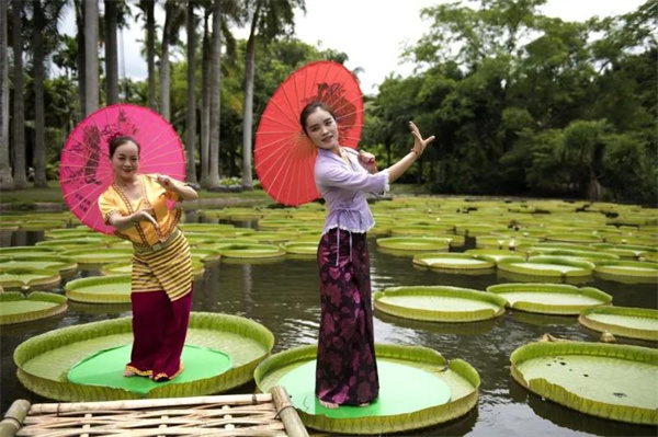 西雙版納植物園于今年7月培植出直徑直逼2米的王蓮葉片,葉片上甚至可以承載體重最高達70公斤的成年人,孩童就更不在話下了。王蓮又稱“女王的蓮花”,具備三變的特性:開花第一晚白色雌花會提升周圍環境溫度來吸引昆蟲傳粉。次日早上,花朵閉合,雌花轉性成雄花,花藥也慢慢成熟。再到第二天傍晚,王蓮會再次綻放,此時花色呈現粉紅色或洋紅色,花朵就由白變紅了。王蓮果實種子極多,有的可達300-400顆,最多的可達700顆。